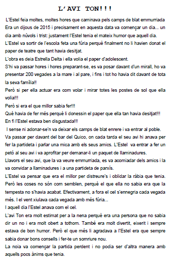 Ha sigut una bona sorpresa veure el teu conte i hem passat una bona estona llegint-lo.